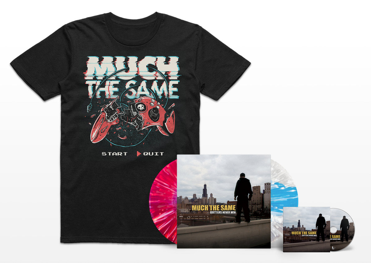 Your chance to start your Much the Same vinyl collection at a discounted price! You get both vinyl variants of Quitters Never Win, a color In color pressing of Everything Is Fine and a Survive LP on classic black!
